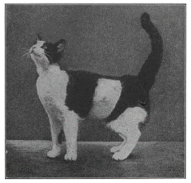 Around the same period that Carrel’s cats were undergoing organ transplants, neurophysiologist Charles Sherrington was using cats to study neural reflexes and proprioception, work that earned him the 1932 Nobel Prize in Physiology or Medicine.While teaching at Oxford University, Sherrington was always accompanied by cats. He taught a course on mammals, often with five or six cats present in the classroom as teaching aids. His laboratory, filled with experimental cats, became known among students as “The Cat Classroom.”In 1898, Sherrington discovered that if the brainstem between the midbrain and the lower hypothalamus was transected in cats, they exhibited a stiff posture — heads and tails raised, spines rigid, and limbs extended. This phenomenon, called decerebrate rigidity, is caused by over-contraction of the extensor muscles (also known as anti-gravity muscles), which straighten the limbs or other parts of the body.From this, Sherrington discovered the stretch reflex, a reflex that occurs when muscles are excessively tense. He was also interested in how cats stand and walk. In 1910, he described that even after removing the brain, cats could stand and perform rhythmic alternating steps, suggesting that standing and walking reflexes originate from sensory input in the lower limbs, not the brain, transmitted directly through the spinal cord. This advanced the understanding of motor control.By 1917, Sherrington focused on the reflexes of cat ears, meticulously defining and studying retraction, folding, covering, itching, and shaking reflexes, proving these reflexes do not require brain involvement. In his papers, he noted:“The cat’s pinnae are sensitive and flexible, capable of numerous reflexes. One, which I mentioned in earlier research, was previously unnoticed by others, though undoubtedly encountered by other observers.”He also found that cats could reflexively move their tails or raise fur in response to dog barks, cat meows, and bird calls, without using the brain. These studies of cat ear and tail reflexes revealed that neural reflex types are far more complex than previously imagined.